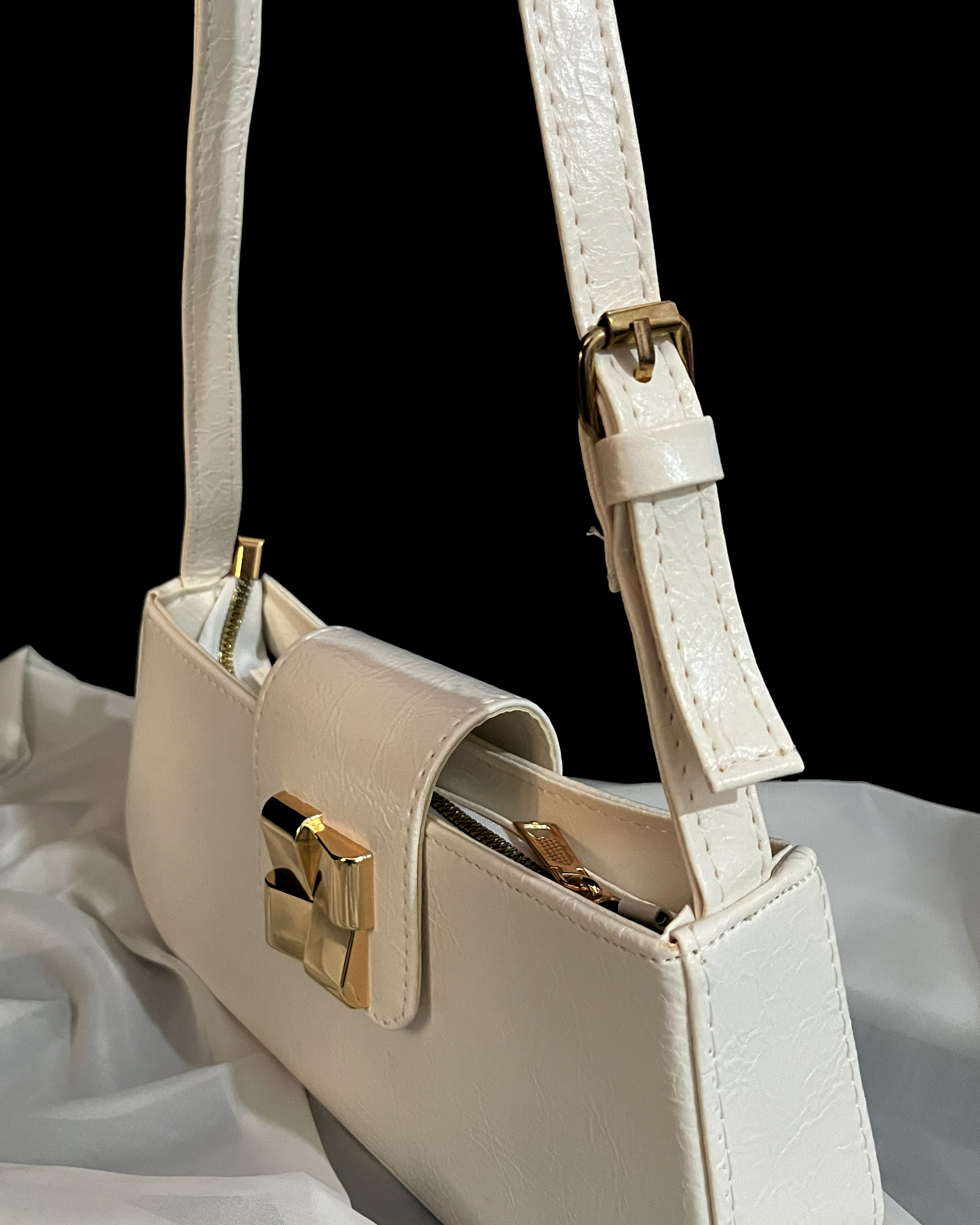 کیف ملیا یک انتخاب شیک و مجلسی برای مهمانیها و موقعیتهای خاص است. طراحی تکزیپ و سگک طلایی جلو، جلوهای لوکس و خاص به آن بخشیده است. این کیف در دو رنگ مشکی و سفید عرضه میشود تا بسته به استایل و سلیقهتان انتخاب کنید. سایز مناسب و طراحی پاسپورتی، حمل وسایل ضروری مانند موبایل، کیف پول کوچک و لوازم شخصی را ساده و شیک میسازد